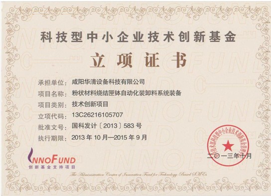 公司以高新技術為依托,依靠自身的技術力量,取得了一系列驕人業績和技術成果。獲得中華人民共和國國家知識產權局頒發的《發明專利證書》二項,獲得中華人民共和國國家知識產權局頒發的《實用新型專利證書》五項。公司于2009年獲得國家中小型企業創新基金扶持,2010年通過ISO9001-2008質量管理體系認證,2010年被評為陜西省高新技術企業, 2011年獲得陜西省專利獎及咸陽市科學技術獎證書等殊榮。